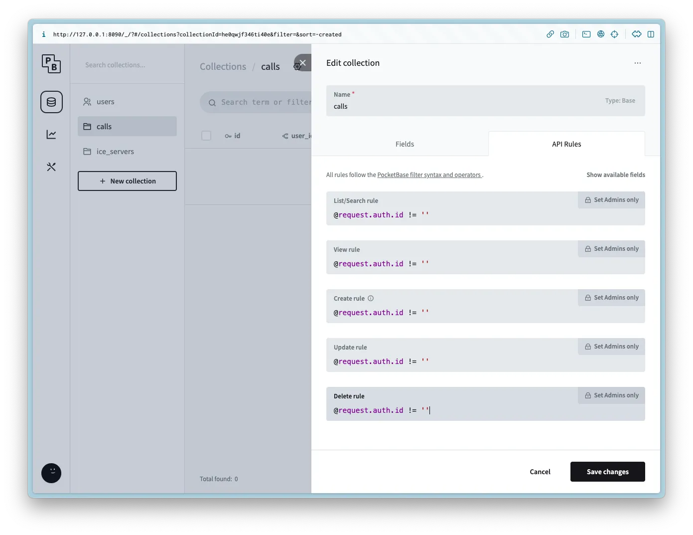 @request.auth.id != ''