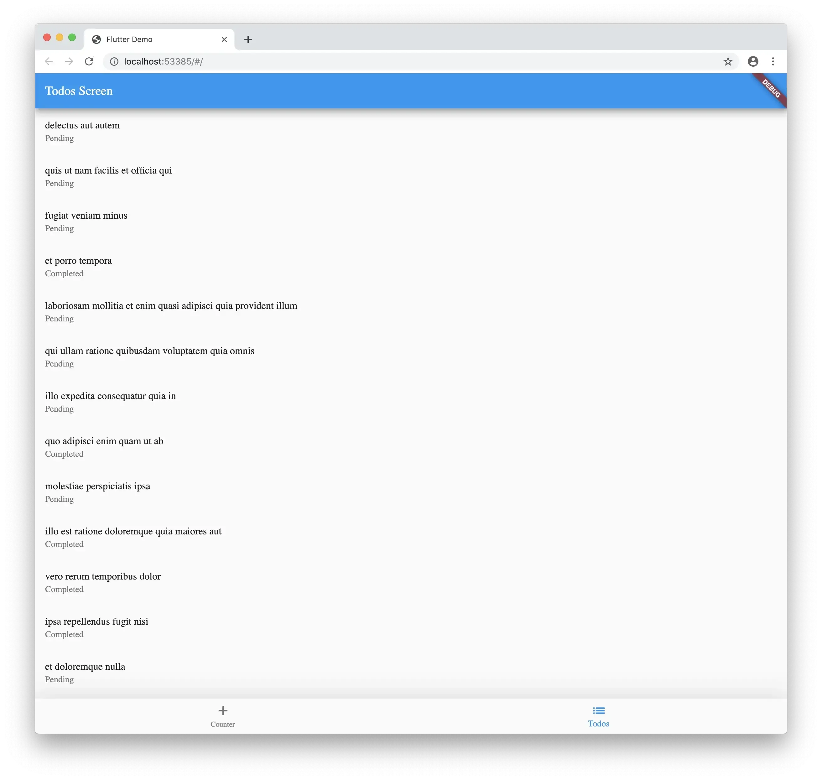 The first step is to just build your application. The only difference that we will make is keeping the UI and business logic separate. When starting out with Flutter it can be very easy to throw all the logic into the screen and calling setState when the data changes. Even the application when creating a new Flutter project does this. That’s why choosing a state management solution is so important.