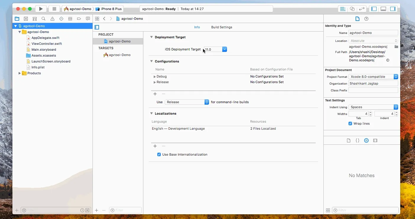 Make sure to change “YOUR PROJECT PATH” to the path to your project in Finder.