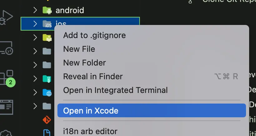 Open up the iOS project in Xcode by right clicking on the iOS folder and selecting “Open in Xcode”.