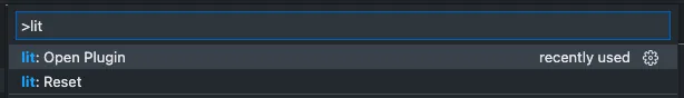 To run the commands to open the extension run lit: open plugin or lit: reset: