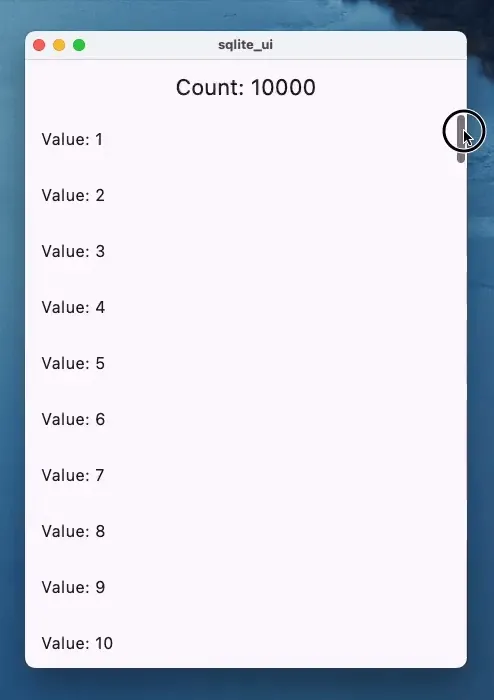 Here is a list view where there are 10000 items and each item is retrieved with a select statement 👀